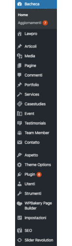 Ecco quindi che, mettendoci nei suoi panni, abbiamo deciso di modificare l'interfaccia del back-end di Wordpress, in particolar modo il menù, limitando diverse funzioni con lo scopo di semplificarne l'esperienza di utilizzo (la user experience).